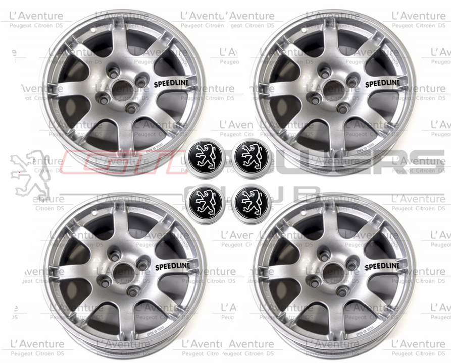 Pack Jantes Speedline SL434 PTS pour Peugeot 205 identique au modèle d’époque vendu à l’unité avec centre de roue .