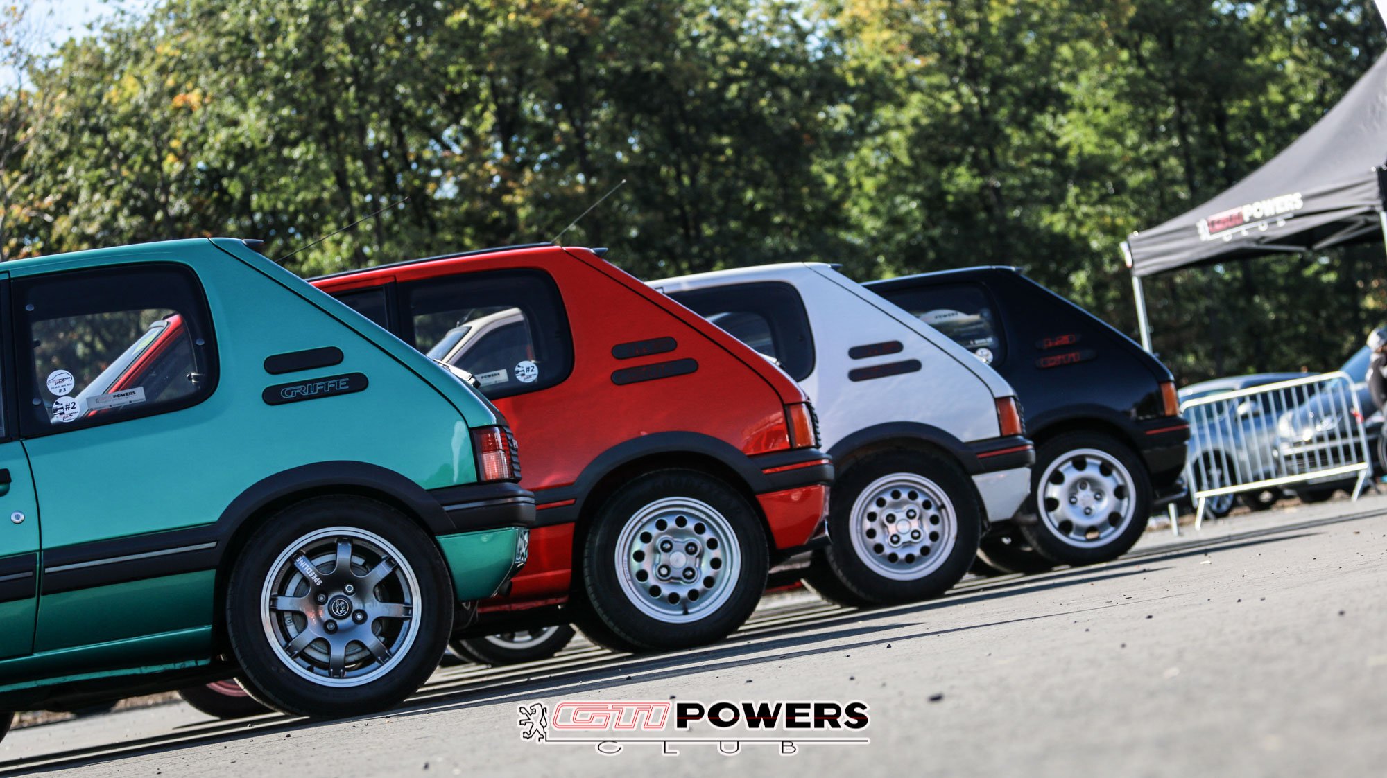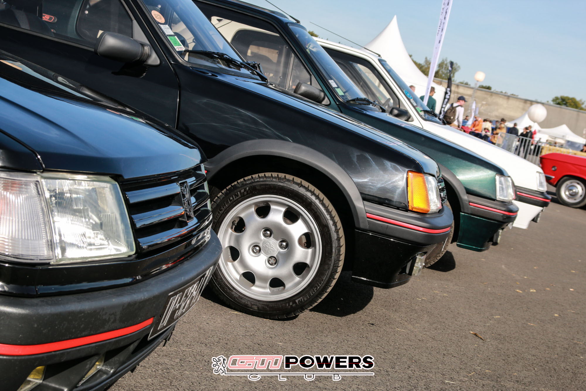 Comme à notre habitude, le Club GTIPOWERS était présent tout le week-end avec pas moins de 24 voitures et une trentaine de personnes. Dans les modèles qui ont répondu présent on pouvait compter sur une 309 GTI16 Noir (rare), une 205 GTI série « Le Mans » (encore plus rare) qui fut produite en Suède, une GTI équipée pour le handicap de notre membre Stéphane, une griffe et des modèles plus classique comme des 1.9l ou 1.6l.